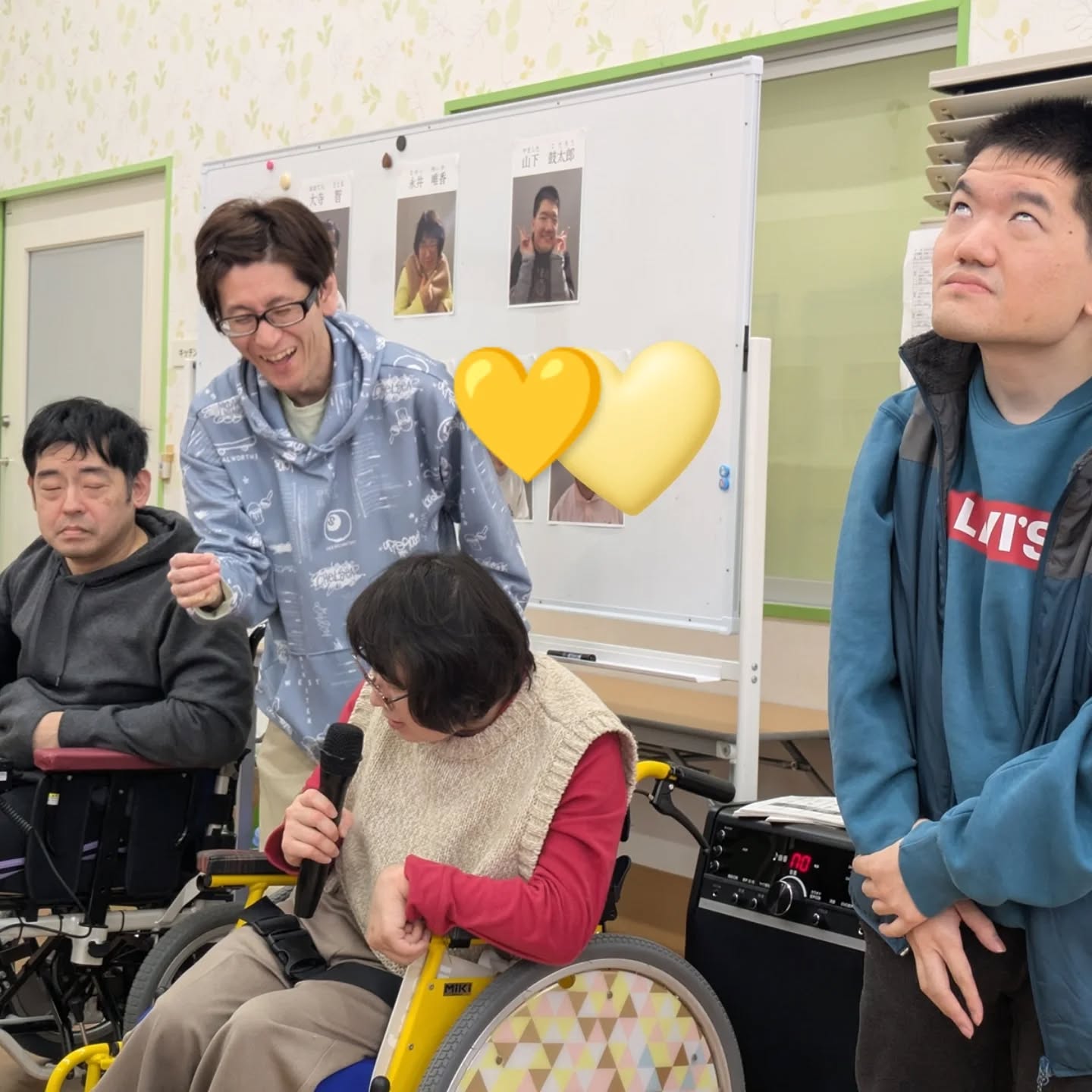 【フォルムののシティ】 本日は利用者の方の自治会「フルーツの会」の新年度役員を決める選挙を行いました🗳 毎年役員は投票で公平に決めているので立候補者の皆さんは当選を願って思い思いに演説をしています! 開票の際には1票開封ごとにドキドキ…!!候補者の皆さん手をぎゅっと握って真剣な表情でした🥺 #あおぞら福祉会 #フォルムののシティ